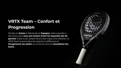 Vortex est née de l’idée de deux amis d’enfance, passionnés par le padel et convaincus que les joueurs méritent mieux que des raquettes ordinaires.
